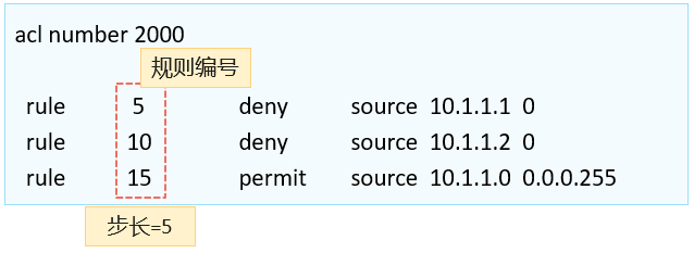 一个ACL中的每一条规则都有一个相应的编号。 - 步长(Step):