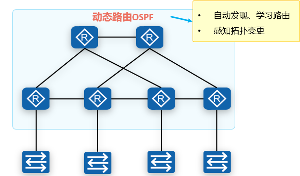 动态路由协议能够自动发现和生成路由,并在拓扑变化时及时更新路由,可以有效减少管理人员工作量,更适用于大规模网络。
