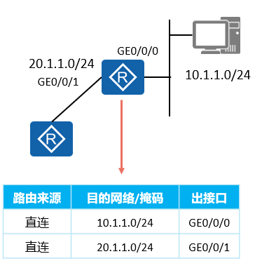 管理员在设备接口配置IP地址,直接生成的路由