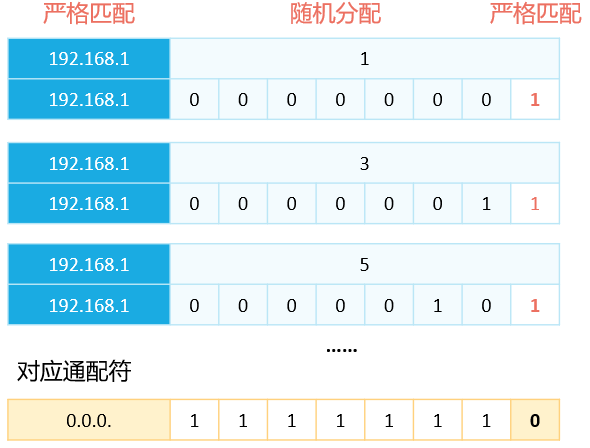 通配符是一个32比特长度的数值,用于指示IP地址中,哪些比特位需要严格匹配,哪些比特位无需匹配。
